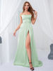 Fleepmart Shiny Satin Long Floor Length Party Dress Tie Up Straps Split Sleeveless Evening Prom Dress Mint Green Red