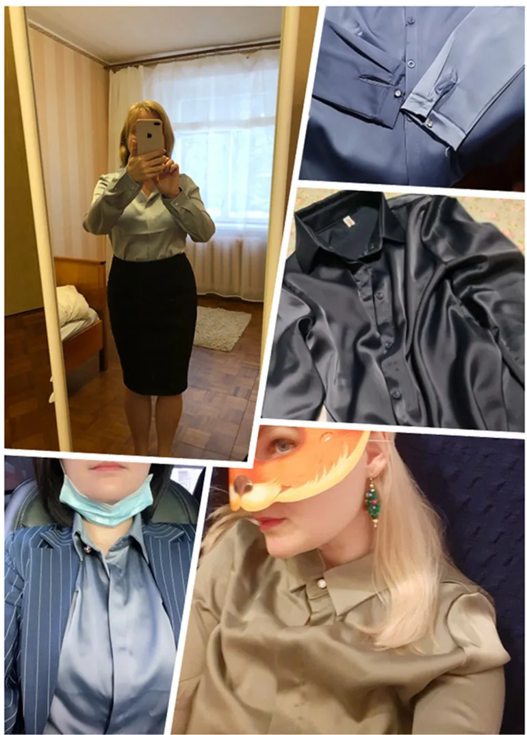 Fleepmart Silk Shirts Women Long Sleeve Shirts Blouses for Women Satin Clothing Shirt Office Lady Solid Silk Shirt Blouse 2022 Fashion Top