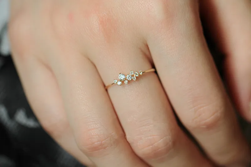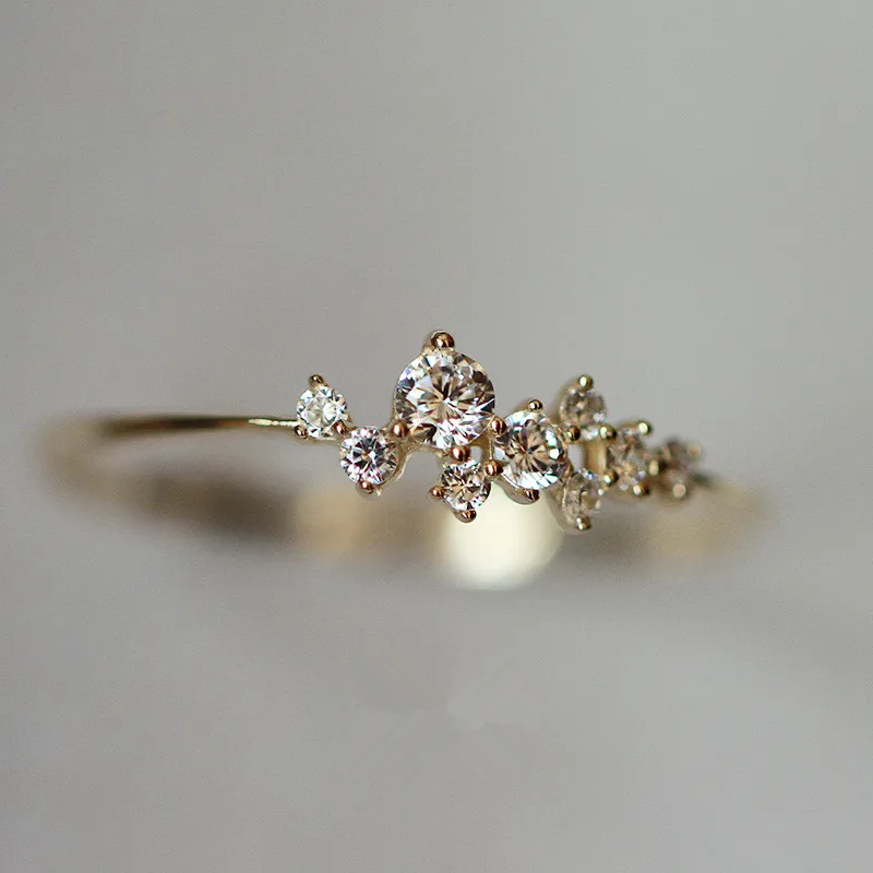 Fleepmart Silver Classic Irregular Shiny Star Plum Ring Women 14k Gold Plating High-end Temperament Party Jewelry Accessories