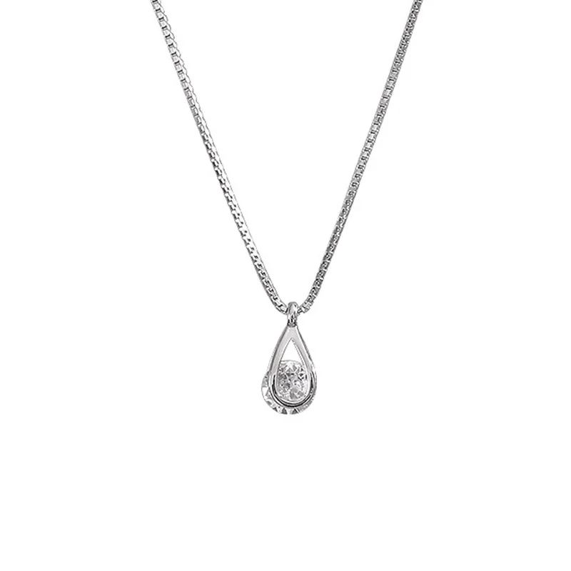 Fleepmart Silver Color Teardrop Shape Zircon Necklace Geometric Shape Pendant Choker Women Jewelry Gift