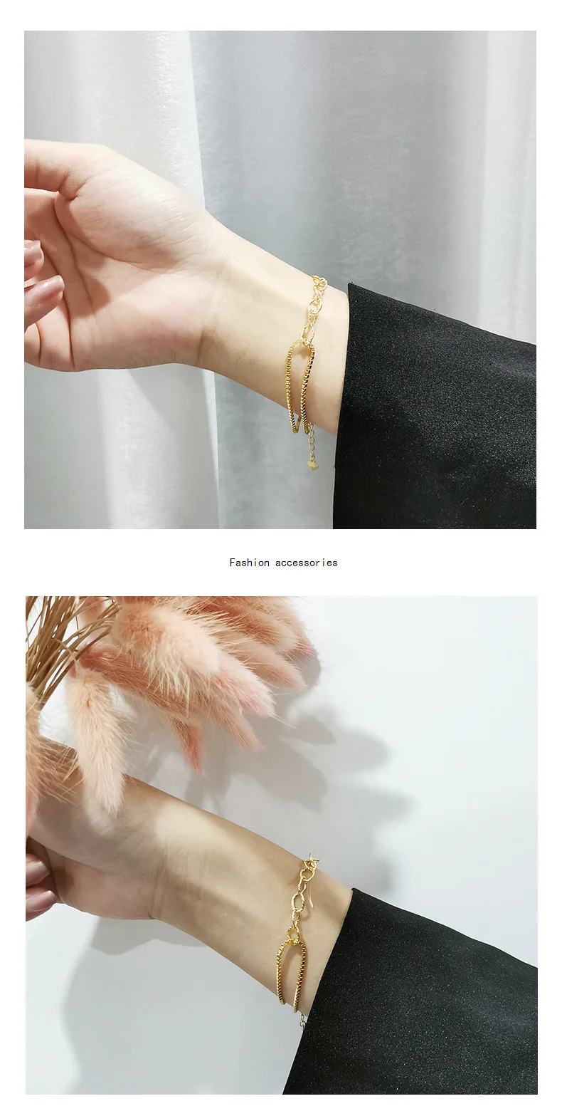 Fleepmart Silver European Simple Asymmetrical Chain Bracelet Women Punk Hip Hop Party Fashion 18k Gold Jewelry Gift