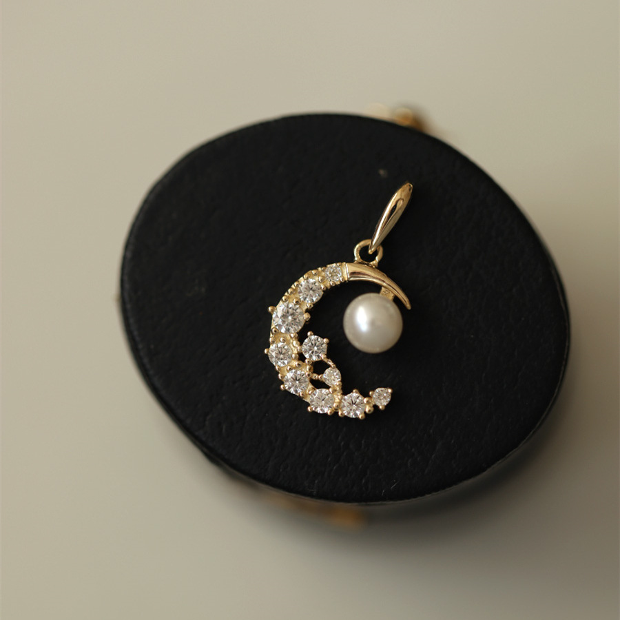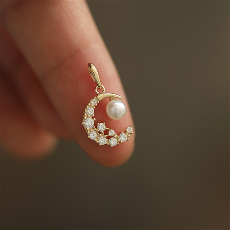 Fleepmart Silver Plated 14k Gold Pearl Necklace for Women Simple Temperament Zircon Moon Pendant INS Clavicle Chain