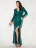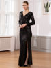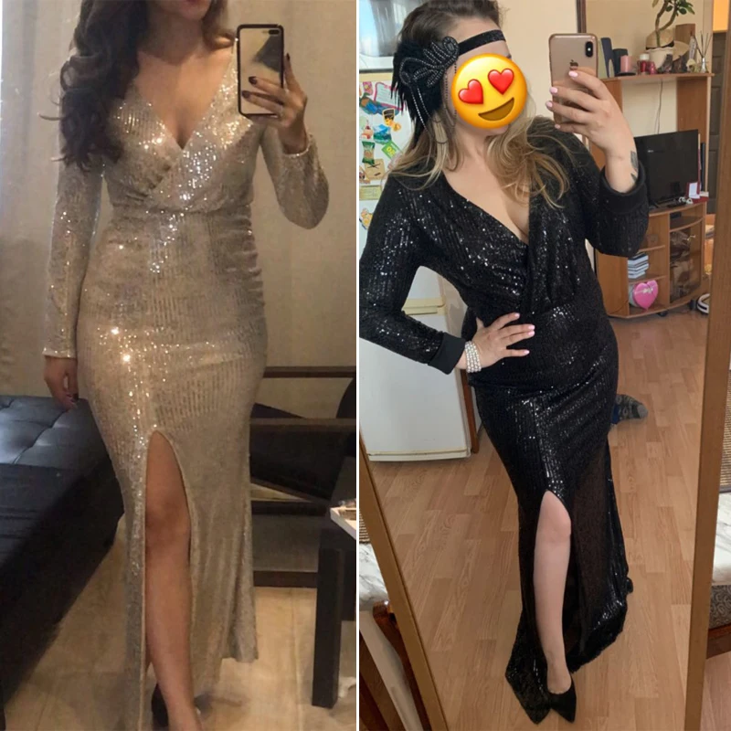 Fleepmart Silver Sequined Maxi Dress Black Green V Neck Evening Party Wrap Dress Stretchy Full Sleeved Long Lining Low Slit LegSize Chart