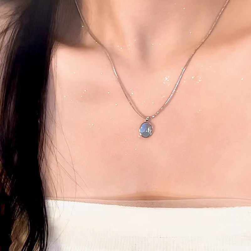 Fleepmart Simple Aquamarine Pendant Necklace For Women Girls Luxury Snake Chain Temperament Jewelry