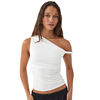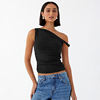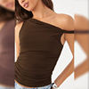 Fleepmart Simple Basic Casual Summer Tank Top Sleeveless Solid Color Off Shoulder Side Ruched Crop Tops Vestidos Spring Women T S