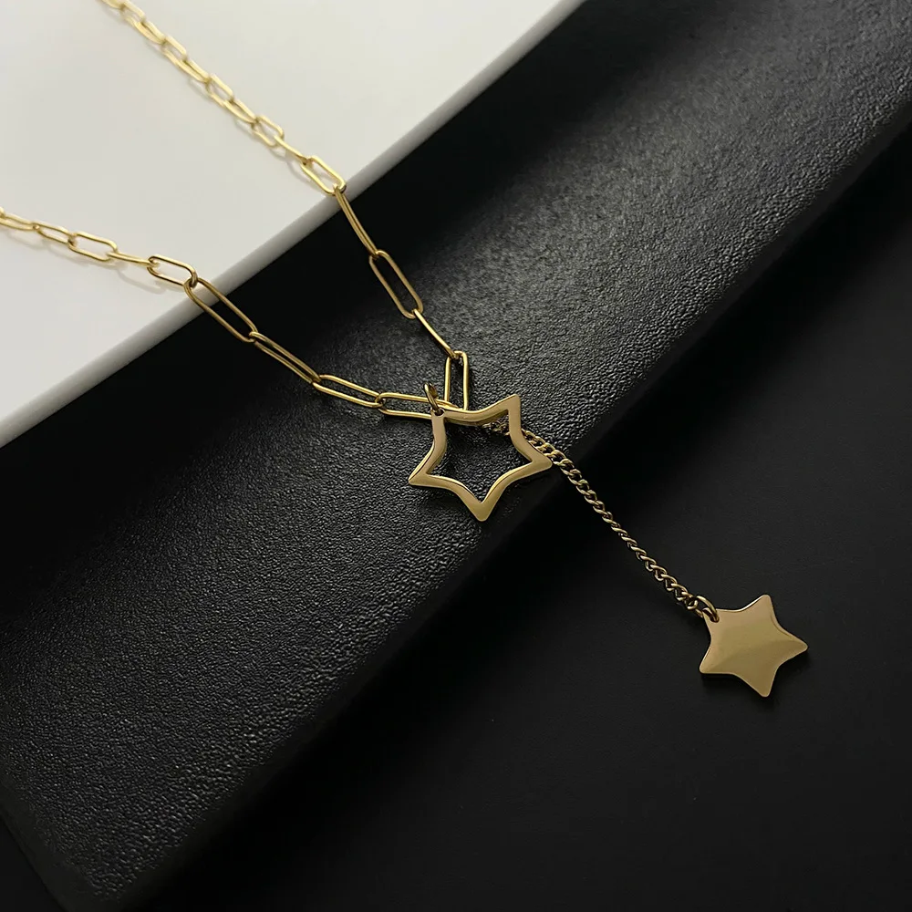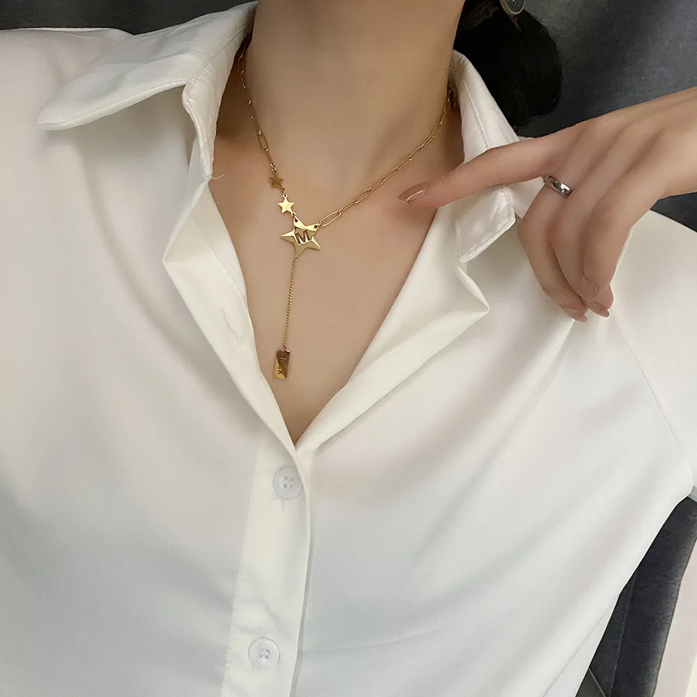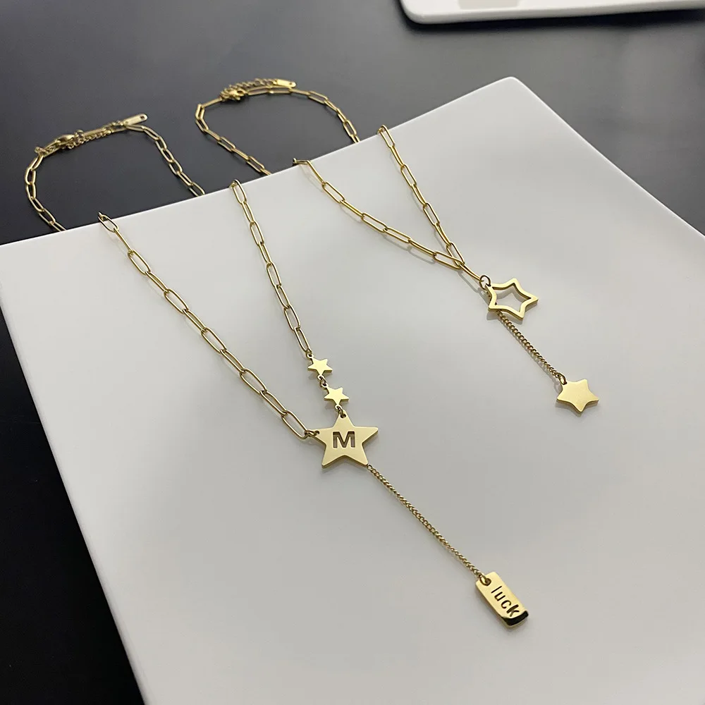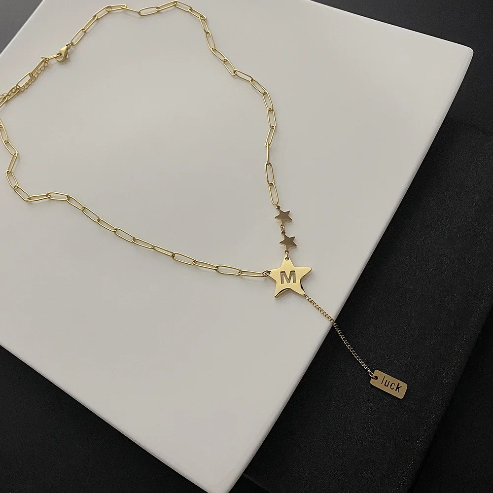 Fleepmart Simple Design Long Pendant Star Letter M Chain Necklaces for Women Stainless Steel Lucky Chokers Necklace Party Wedding Jewelry