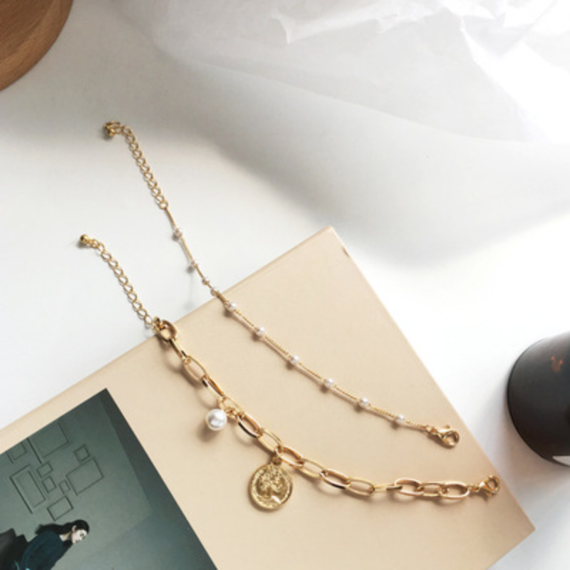 Fleepmart Simple Elegant Imitation Pearl Bracelets Gold Color Beads Chain for Womens Goth Chain Bracelet Bangles Trend Jewelry Gift