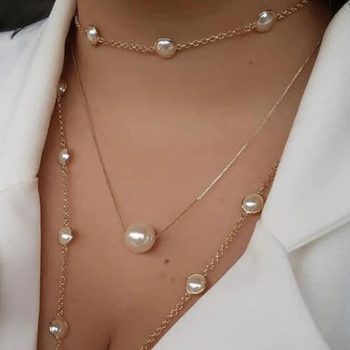 Fleepmart Simple Fashion 925 Sterling Silver Necklace Ball Beads Pearl Sweater Long Chain Necklaces For Women choker collares