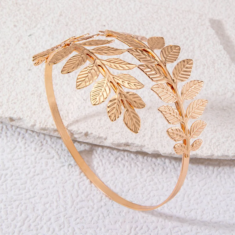 Fleepmart Simple Fashion Gold Colour Arm Bangle for Women Girl Koren Charms Leaf Geometric Alloy Metal Jewelry Party браслет