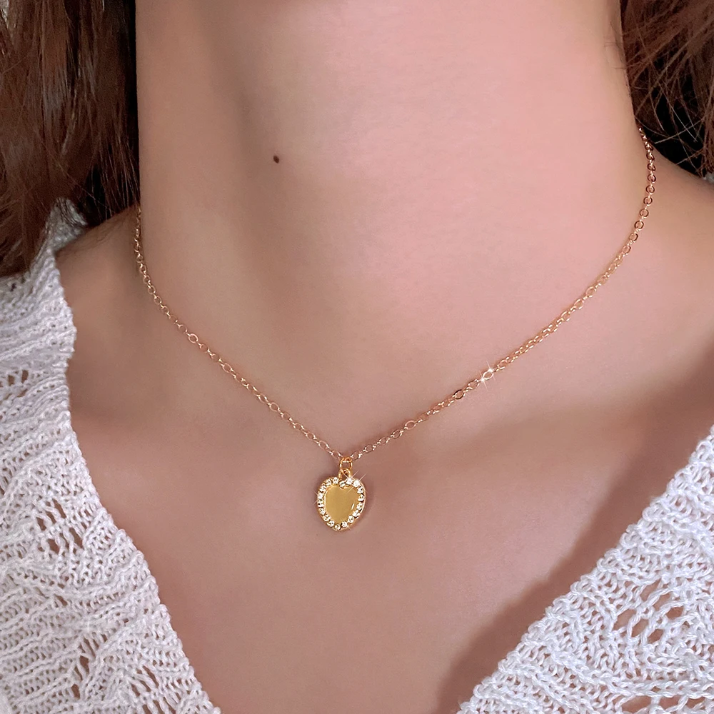 Fleepmart Simple Gold Heart Choker Necklace For Women Fashion Crystal Geometric Pendant Necklace 2022 Trend Collar Jewelry Gift