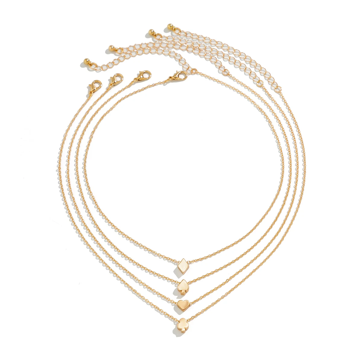 fleepmart Simple Multi-layer Fine Metal Chain Necklace Fashion Geometric Heart-shaped Square Pendant Choker Women’s Charm Jewelry