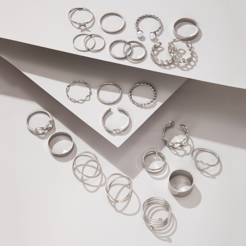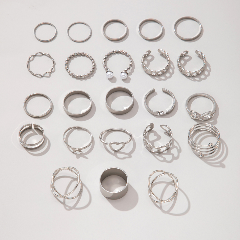 Fleepmart Simple Pearl Stone Heart Joint Ring Sets for Women Men INS New Butterfly Gold Color Jewelry Anillo 23pcs/sets