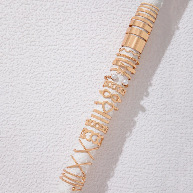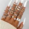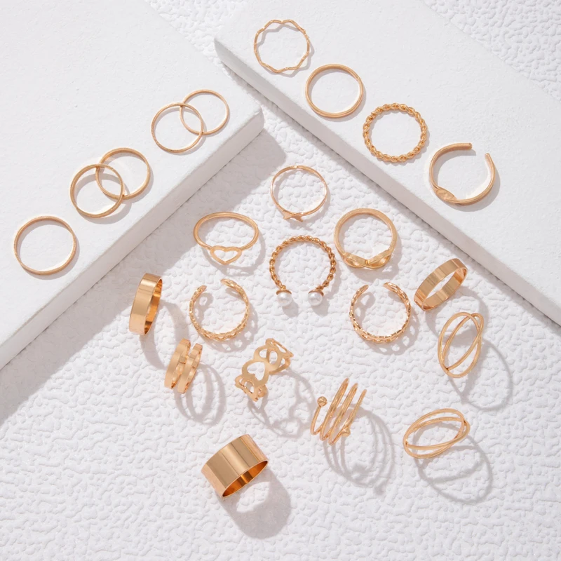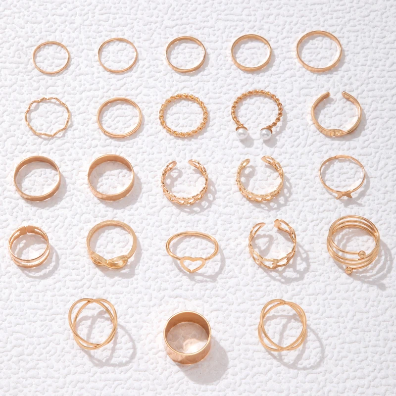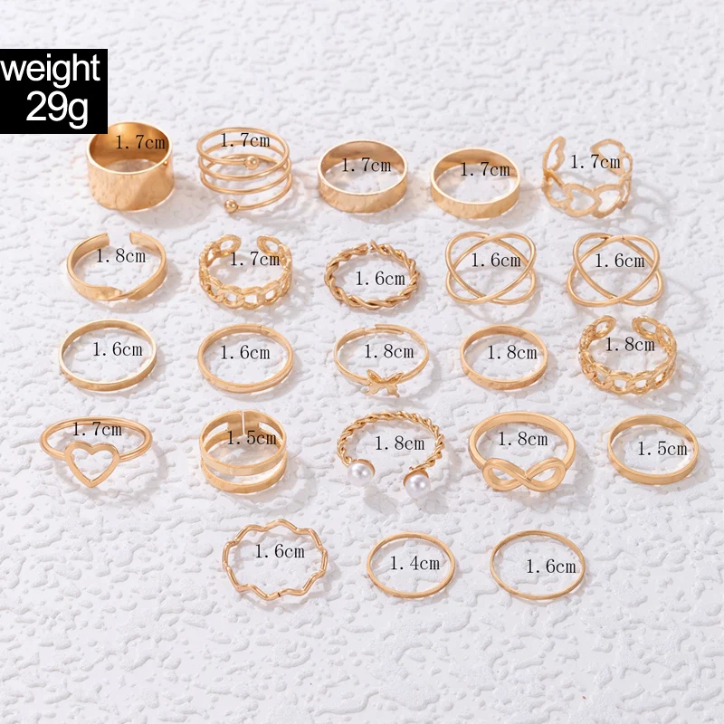 Fleepmart Simple Pearl Stone Heart Joint Ring Sets for Women Men INS New Butterfly Gold Color Jewelry Anillo 23pcs/sets
