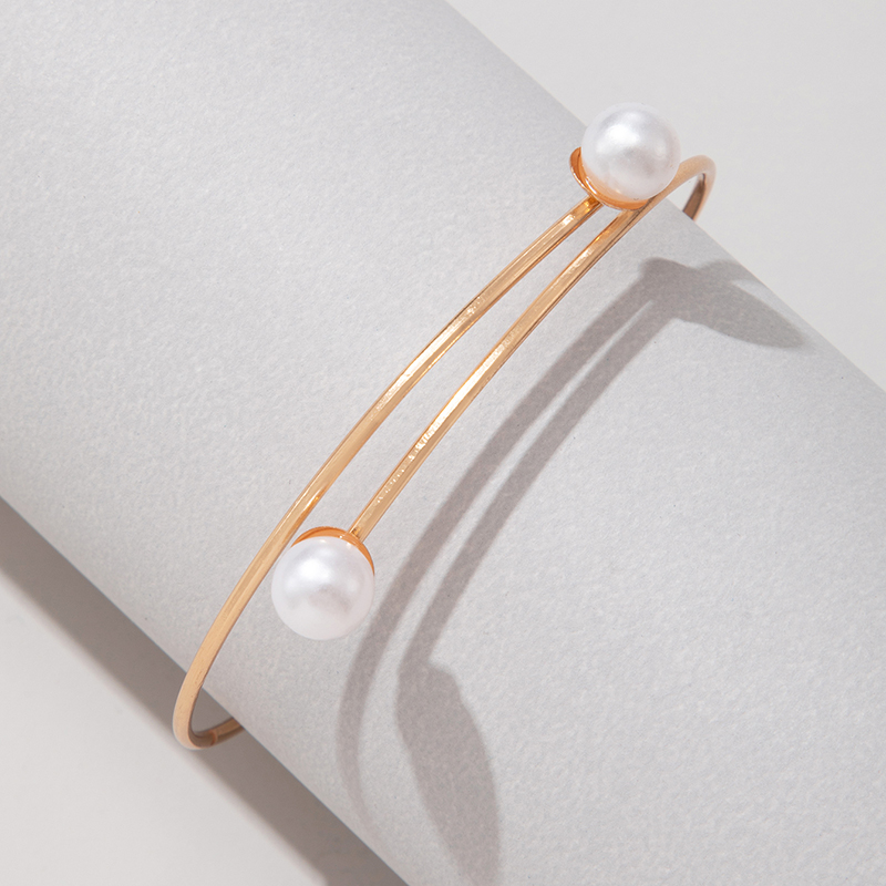 Fleepmart Simple Pearl Stone Single Layer Suitable Women’s Geometric Alloy Adjustable Bracelet Accessories