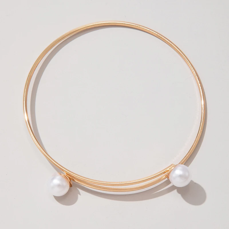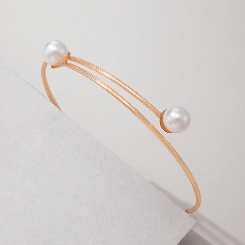 Fleepmart Simple Pearl Stone Single Layer Suitable Women’s Geometric Alloy Adjustable Bracelet Accessories