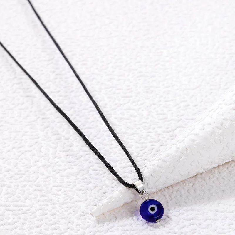 Fleepmart Simple Round Turkish Evil Eye Pendant Necklace For Womens Jewelry Thin Clavicle Chains Turkey Necklaces Collar Gifts