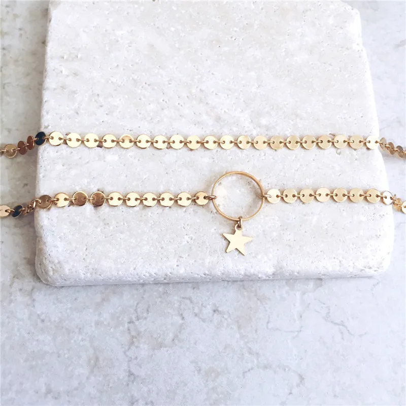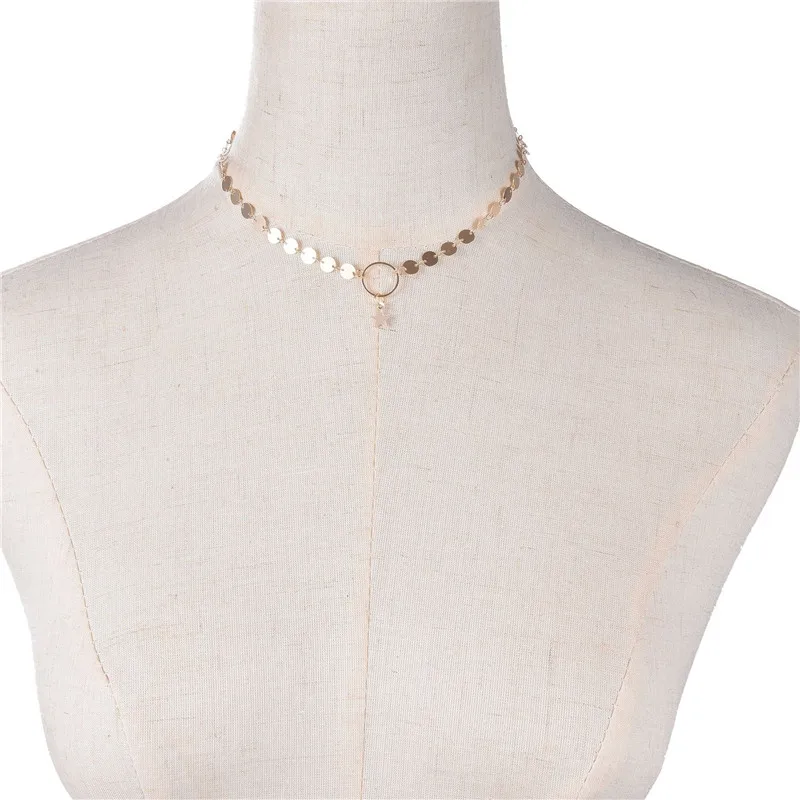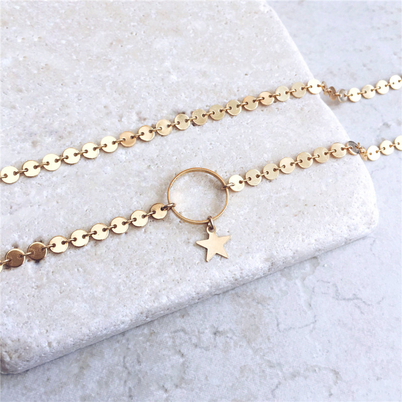Fleepmart Simple Star Sequins Choker Necklace Clavicle Circle Chains Charm Fashion Jewelry Collar Maxi Necklace Women