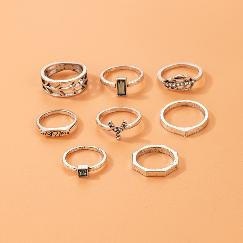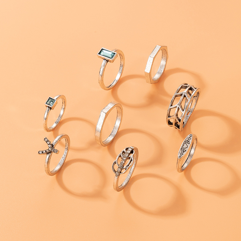 Fleepmart Simple Style Clear Rhinestone Joint Ring Sets Charms Flowers Geometry for Women Men Jewelry 8pcs/sets