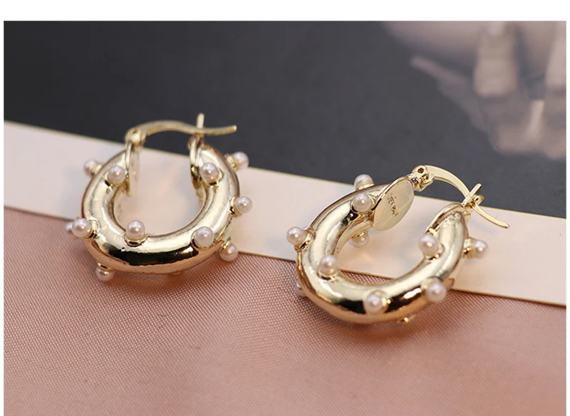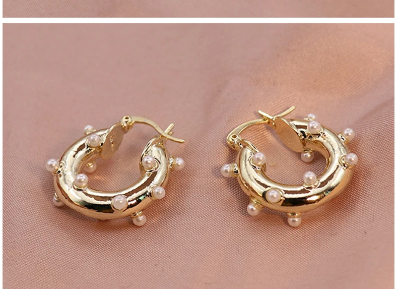 Fleepmart Simple Vintage Gold Color Metal Geometric Round Circle White Pearl Ball Small Loop Hoop Earring For Women Girl Weeding Party