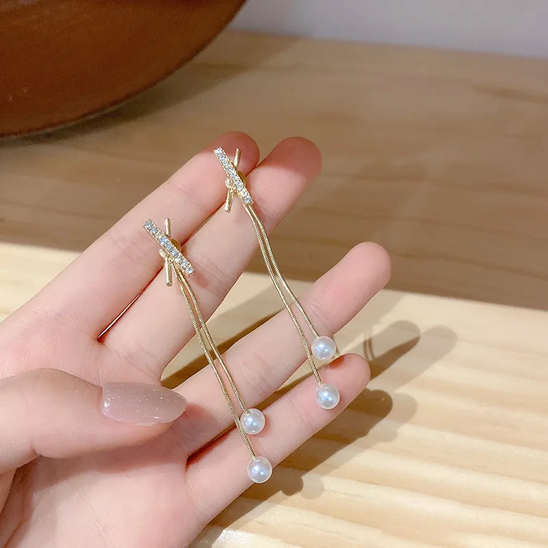 Fleepmart Simulation Butterfly Pearl Long Earrings For Women Heart Star Rhinestone Wedding Pendant Tassel Earrings Fashion Jewelry