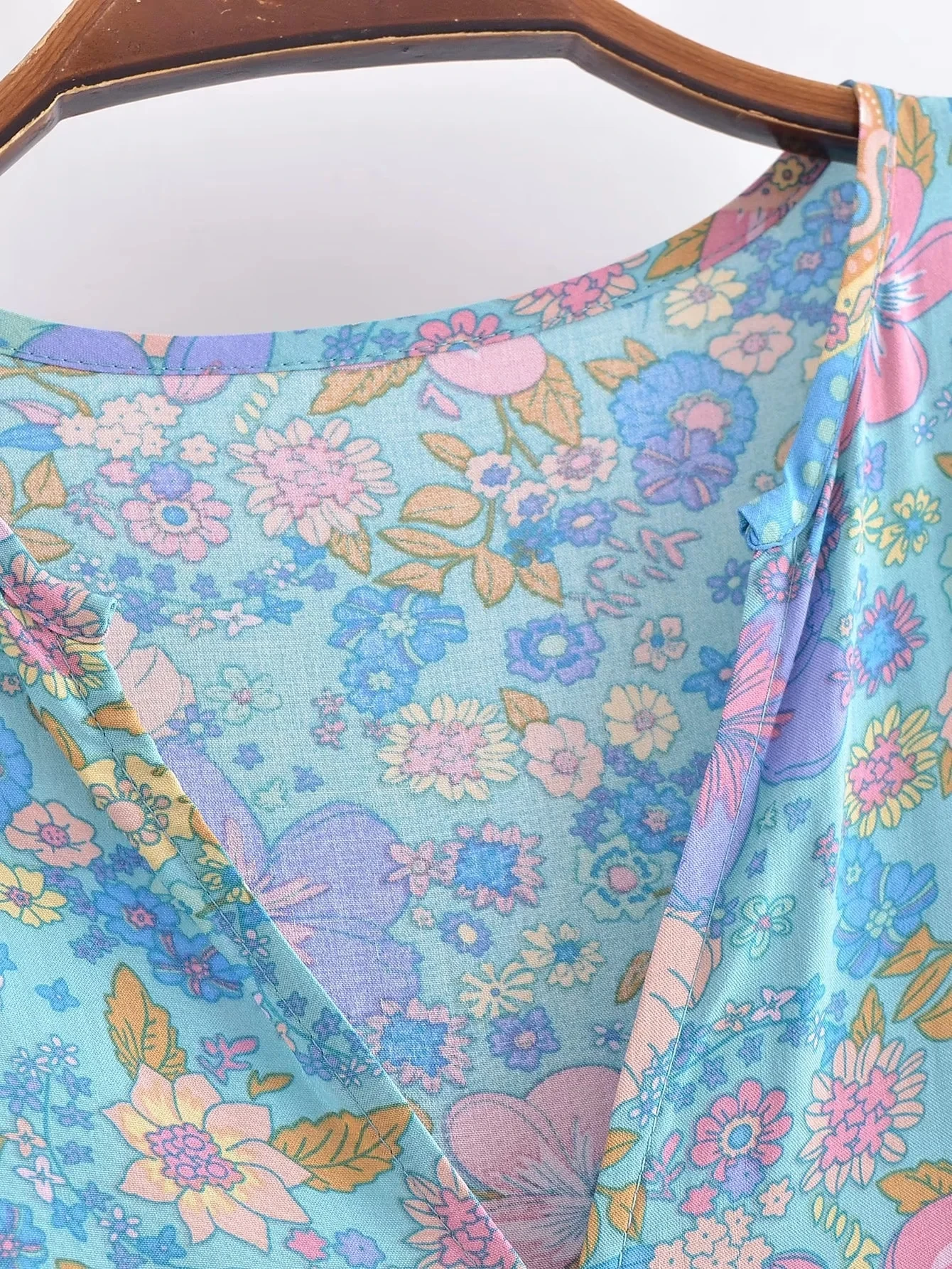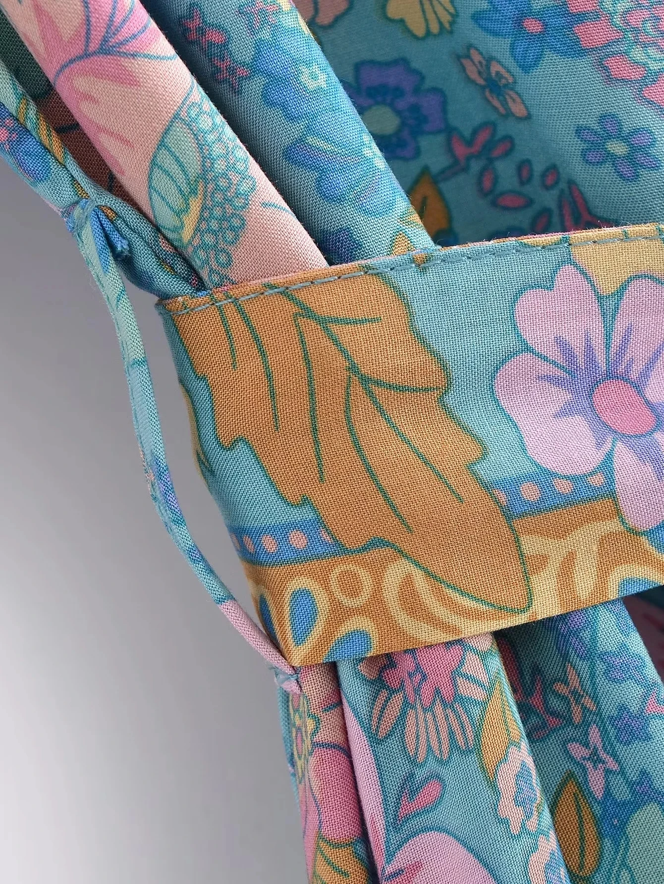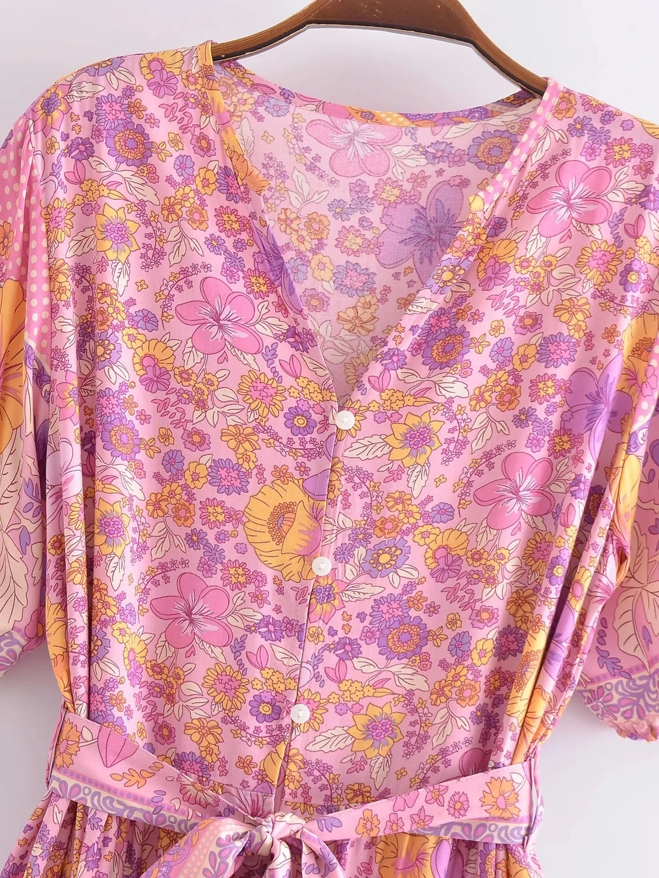 Fleepmart Single Breasted Bohemian Holiday Summer Women Dress Belt Casual Loose Maxi Floral Dress Short Sleeve Long Viscose Dress