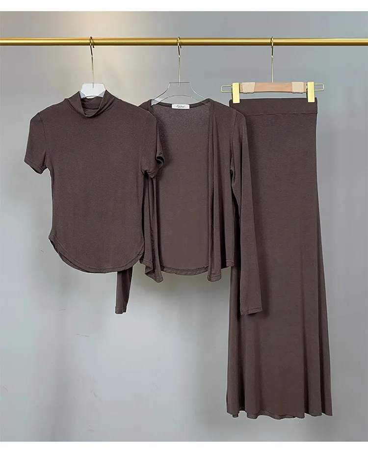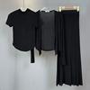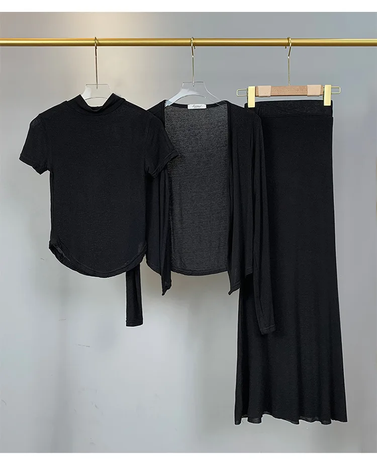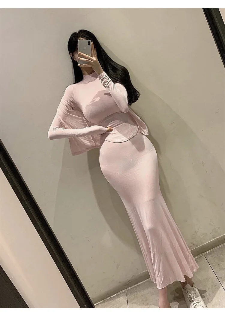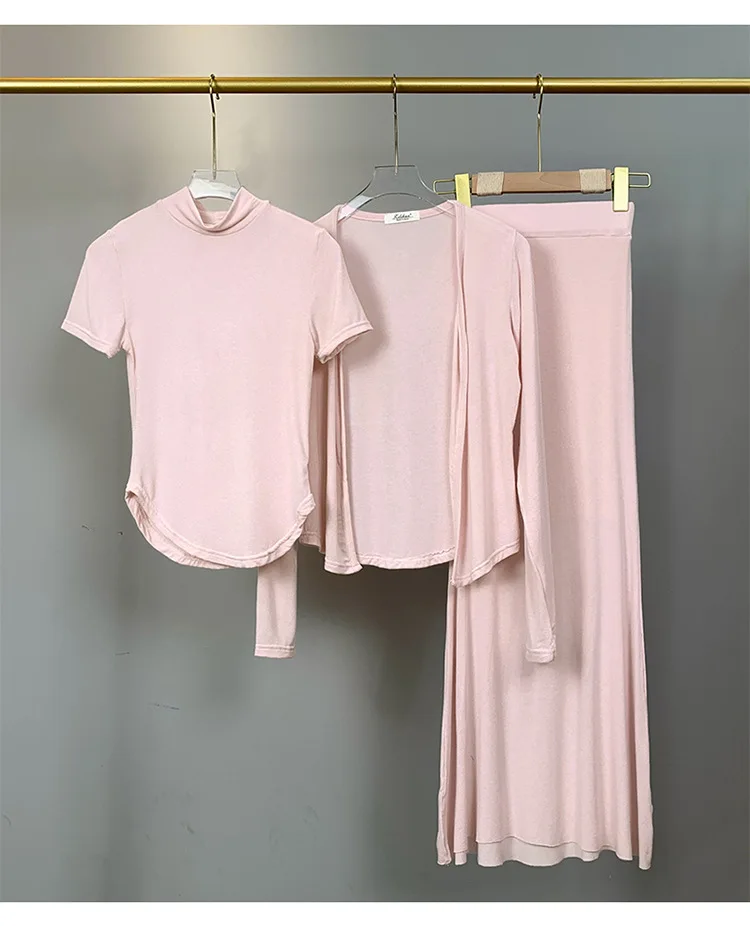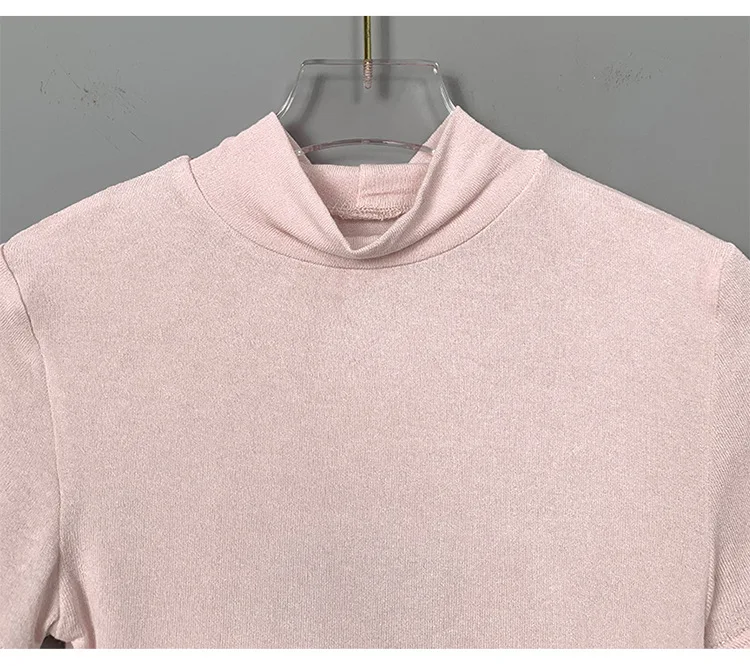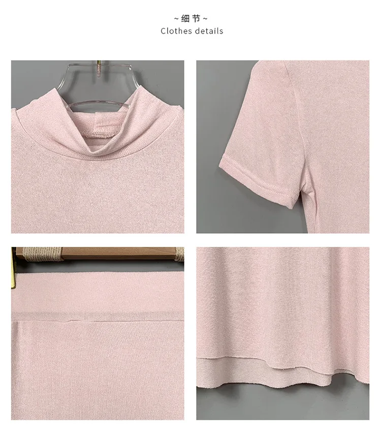 Fleepmart Skirts Set Pink Korea Slim Sexy Fashion Three Piece Set For Women Tight Half High Neck Short Sleeve T Shirt