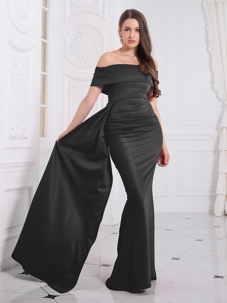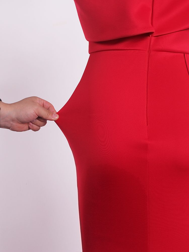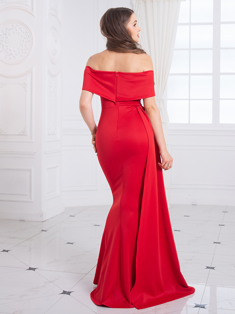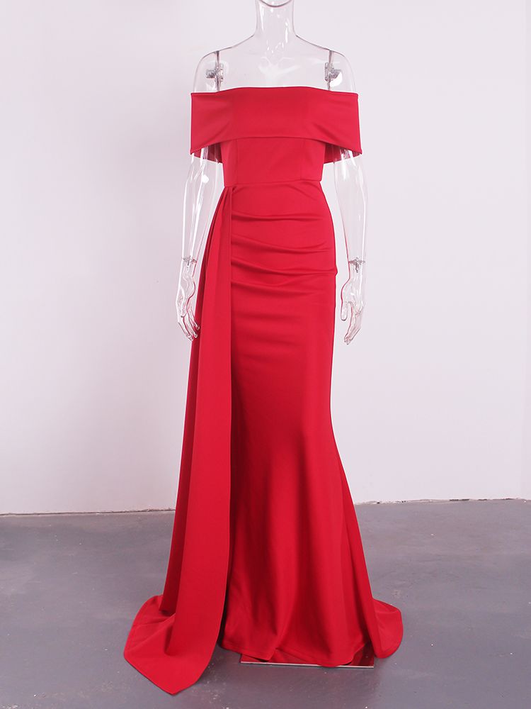 Fleepmart Slash Neck Off the Shoulder Evening Maxi Dress Red White Stretch Floor Length Elegant Long Gown
