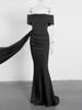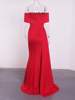 Fleepmart Slash Neck Off the Shoulder Evening Maxi Dress Red White Stretch Floor Length Elegant Long Gown