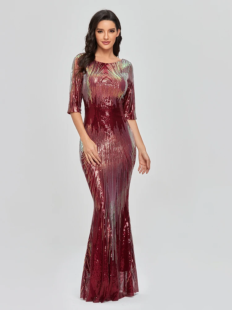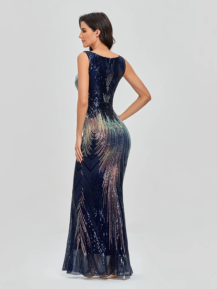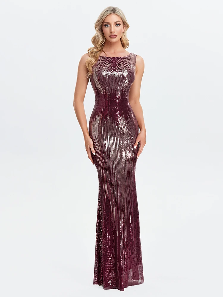 Fleepmart Sleeveless O-neck Evening Party Dress Shinning Sequins Mermaid Prom Gowns Elegant Slim Robe De Soriee Women Full Dress 2022 New