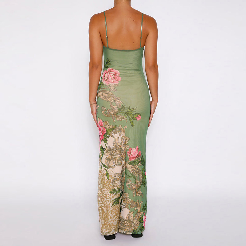Fleepmart Sleeveless Print Suspender dress women Fashion Vneck slim long skirt 2023 summer fashion women’s beach party club robe There are no reviews yet