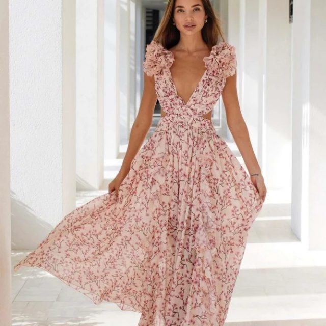 Fleepmart Sleeveless Print Suspender dress women Fashion Vneck slim long skirt 2023 summer fashion women’s beach party club robe There are no reviews yet