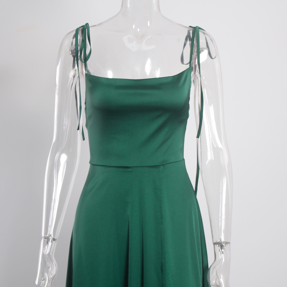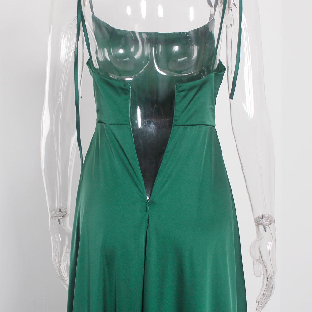 Fleepmart Sleeveless Split Front Backless Satin Maxi Dress Floor Length Long Evening Party A Line Gown