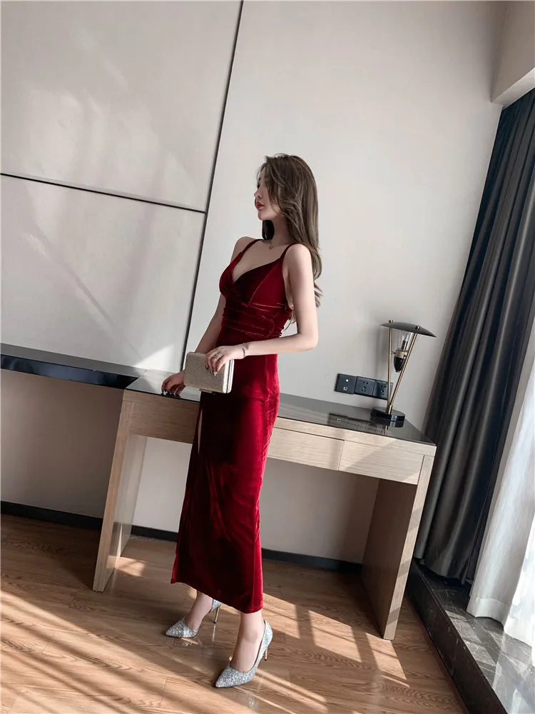 The item is good quality, it’s slightly stretchy, I’m a size Uk 8-10 so that’s a M in this size. It’s comfy, and it’s not tight at all. Has slight padding to prevent that nip poking out haha. Perfect for attending weddings, formal dinners. I’m 5ft 5 so it does reach the ankles and with heels it’s perfect. It’s a zip up at the back as well.