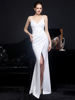 Fleepmart Soft Satin Sexy Strap Pleat Evening Dress Women’s Backless Slit Party Maxi Dress Long Prom Dress