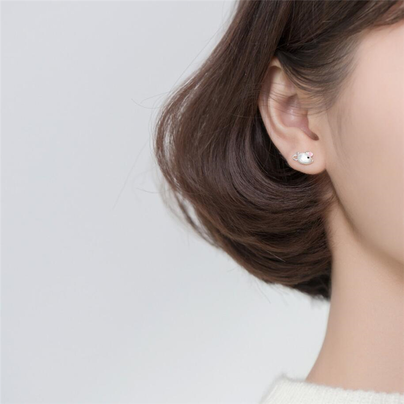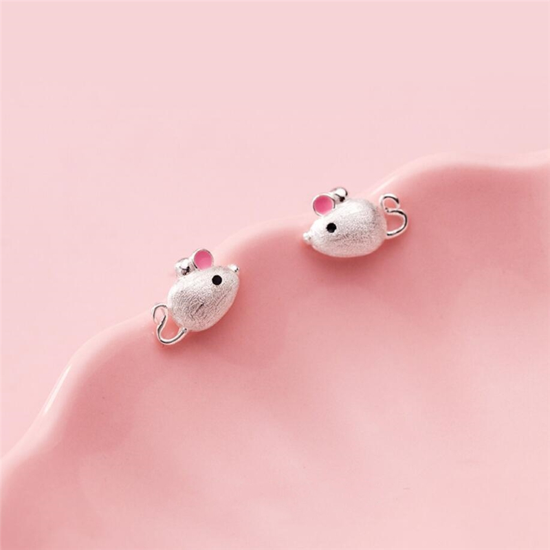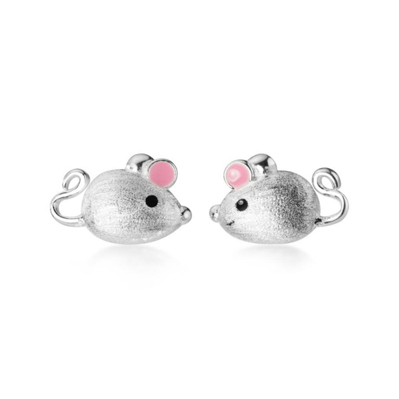 Fleepmart Sole Memory 2021 Rat Year Zodiac Sign Shiny Mouse Lovely 925 Sterling Silver Fashion Female Stud Earrings