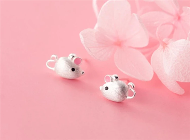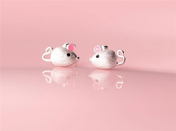 Fleepmart Sole Memory 2021 Rat Year Zodiac Sign Shiny Mouse Lovely 925 Sterling Silver Fashion Female Stud Earrings