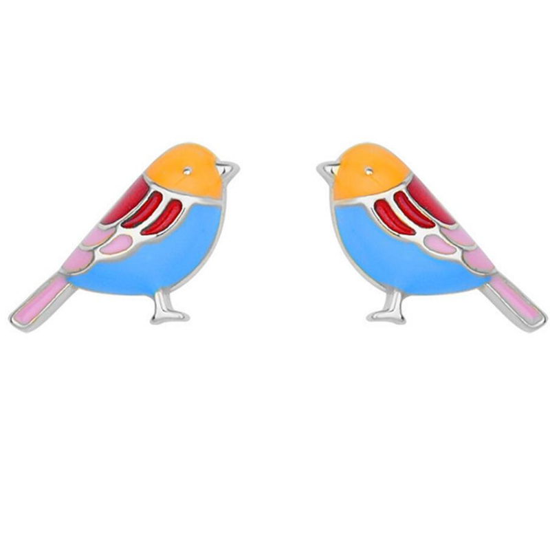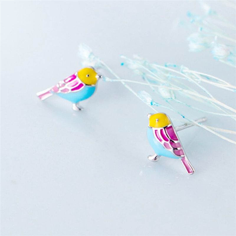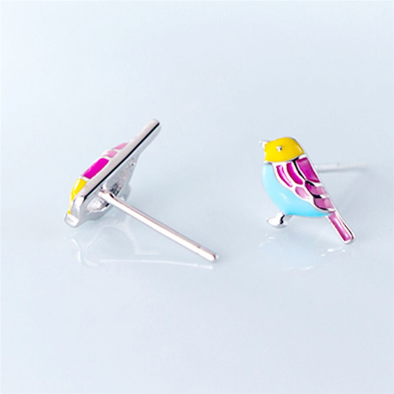 Fleepmart Sole Memory Cute Colored Dripping Glaze Bird 925 Sterling Silver Fashion Female Stud Earrings