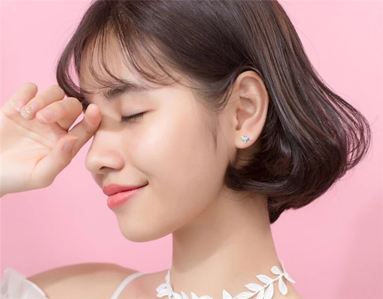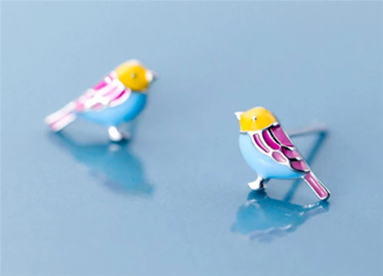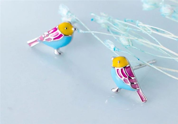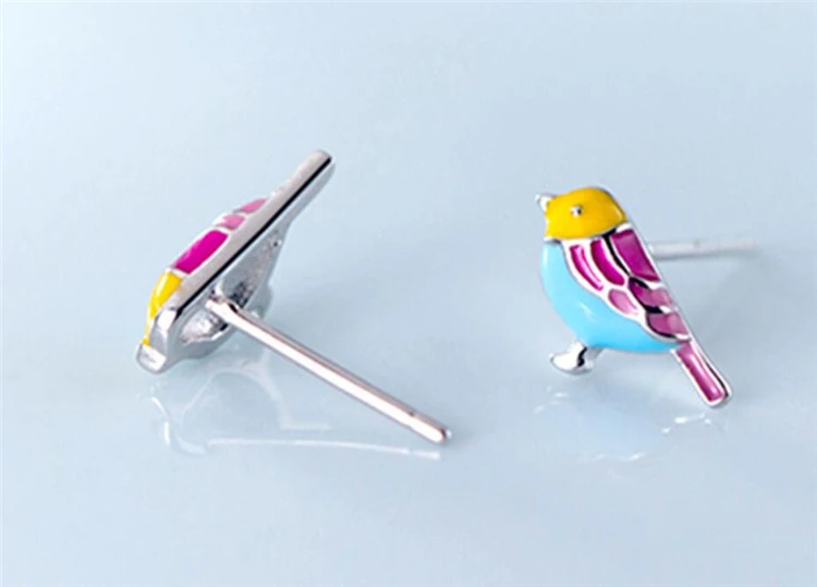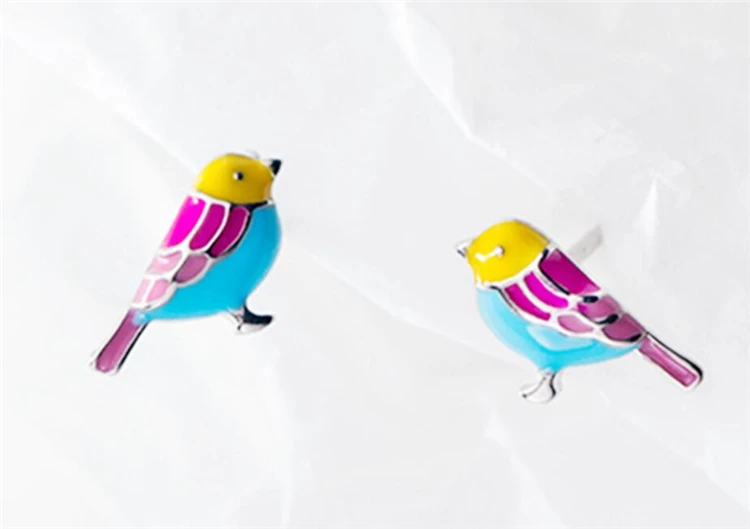 Fleepmart Sole Memory Cute Colored Dripping Glaze Bird 925 Sterling Silver Fashion Female Stud Earrings