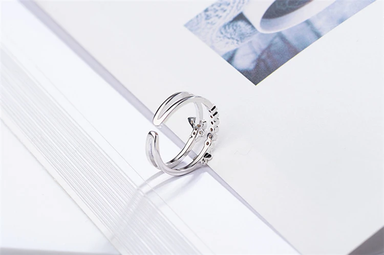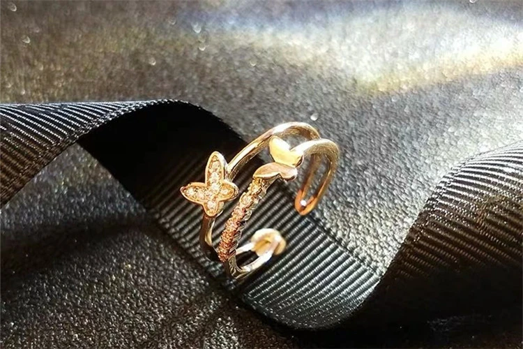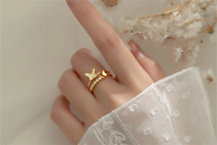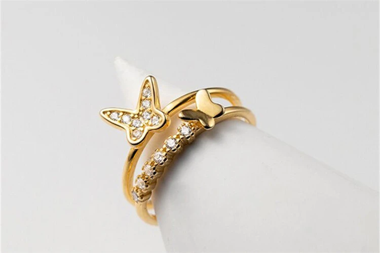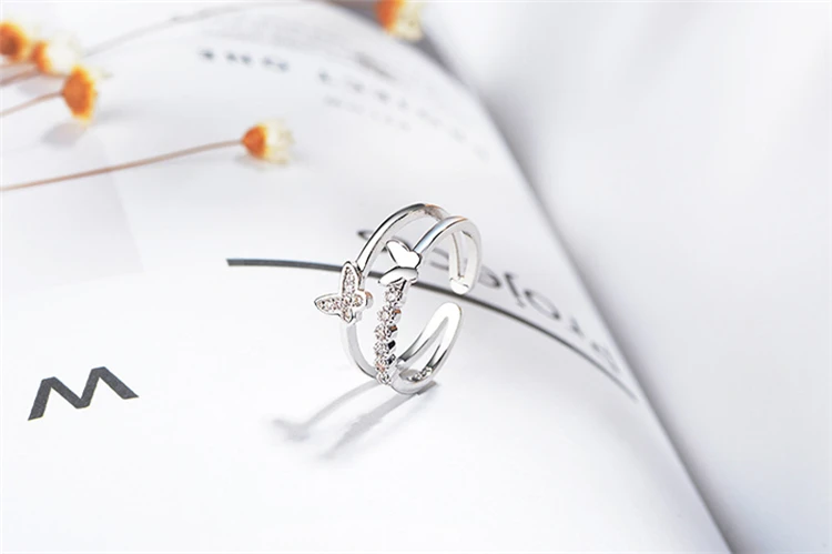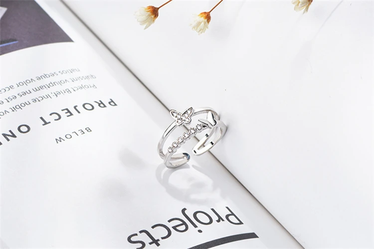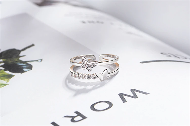 Fleepmart Sole Memory Double Layer Shiny Cute Butterfly 925 Sterling Silver Female Resizable Opening Rings