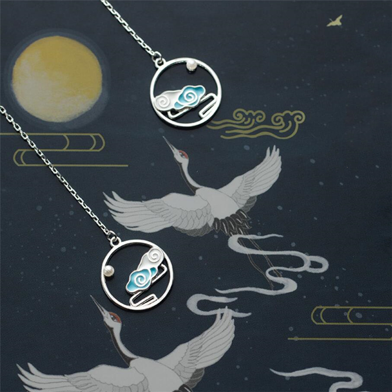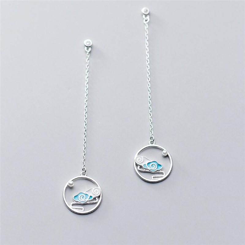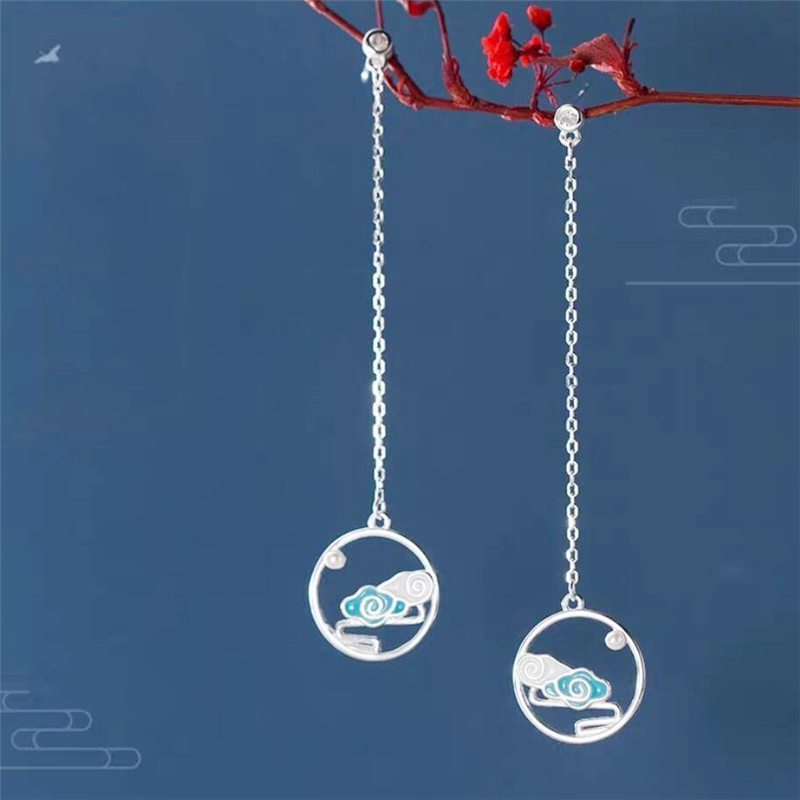 Fleepmart Sole Memory Literature Art Original Cloud Auspicious Luck 925 Sterling Silver Fashion Female Dangle Earrings