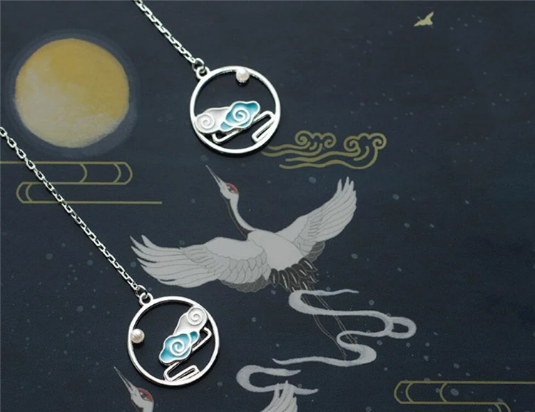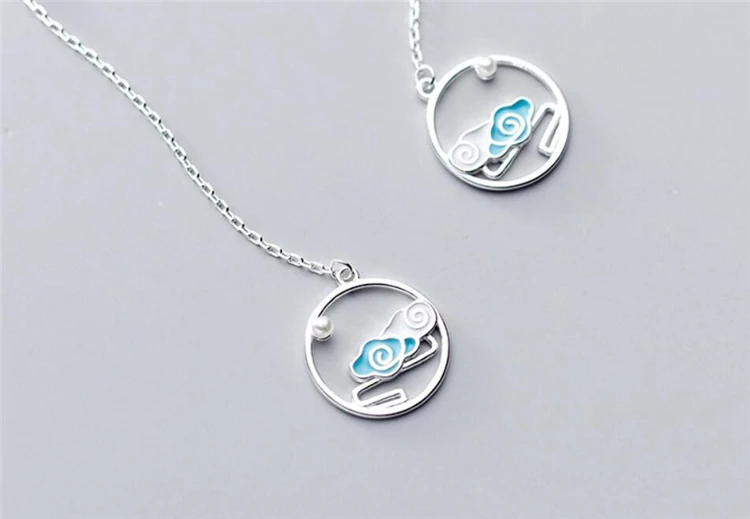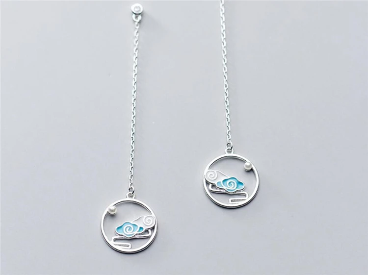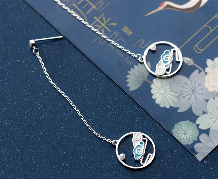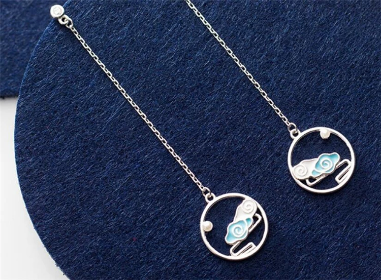 Fleepmart Sole Memory Literature Art Original Cloud Auspicious Luck 925 Sterling Silver Fashion Female Dangle Earrings