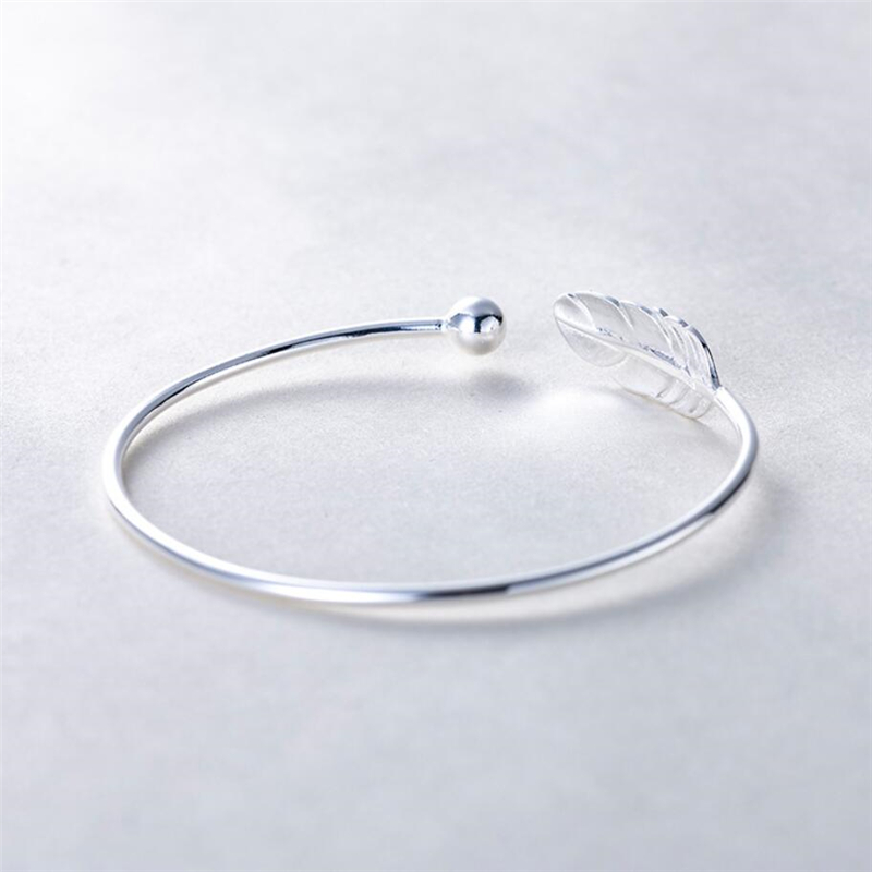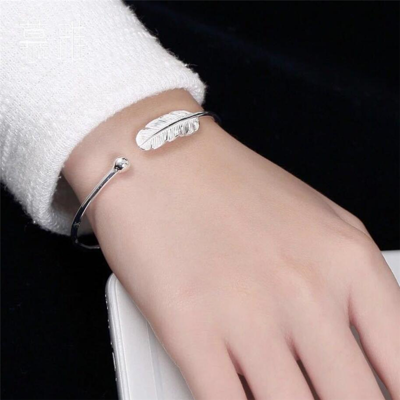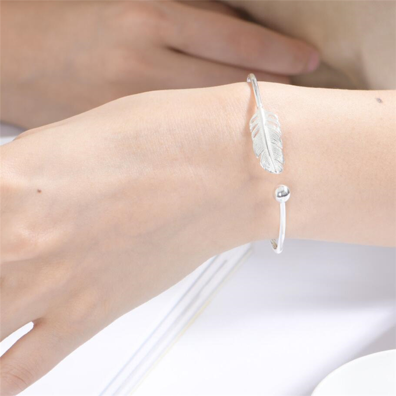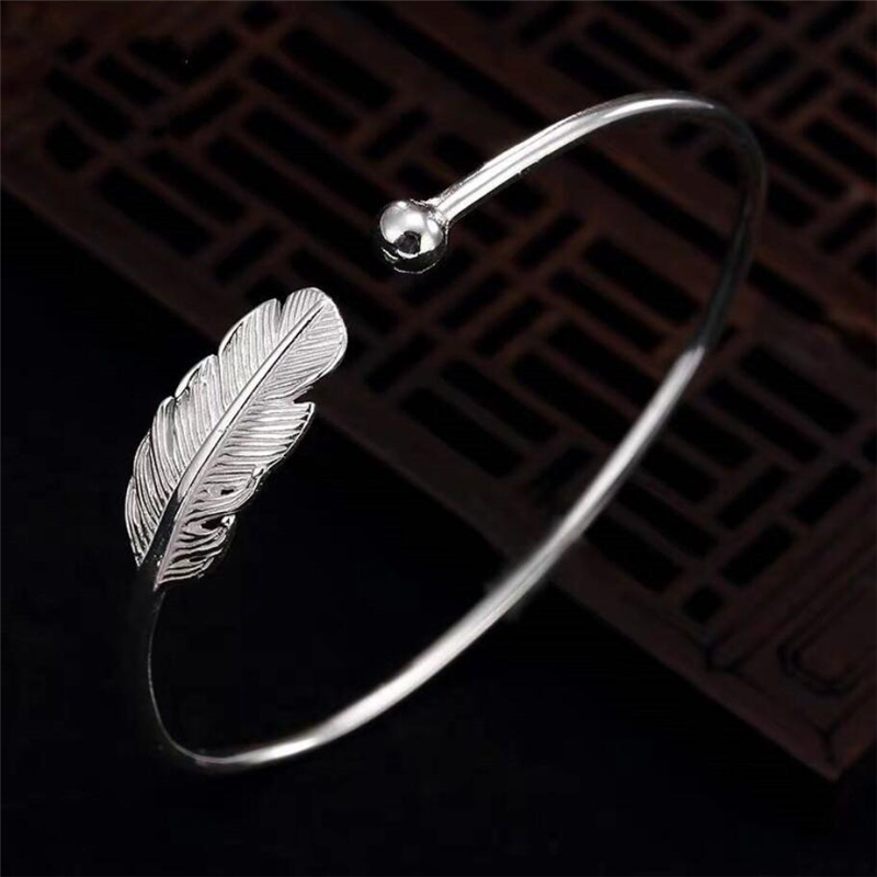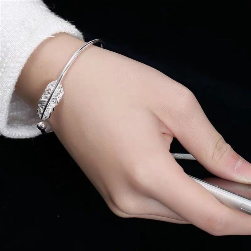 Fleepmart Sole Memory Simple Feather Cute 925 Sterling Silver Female Resizable Bracelets