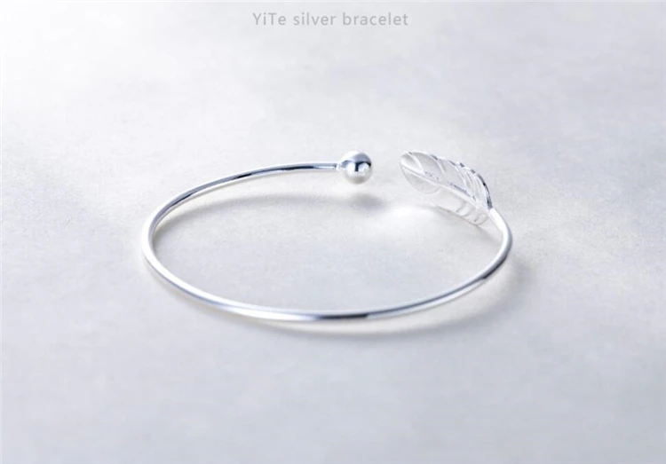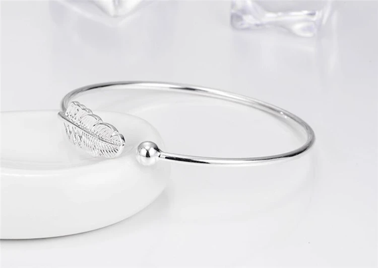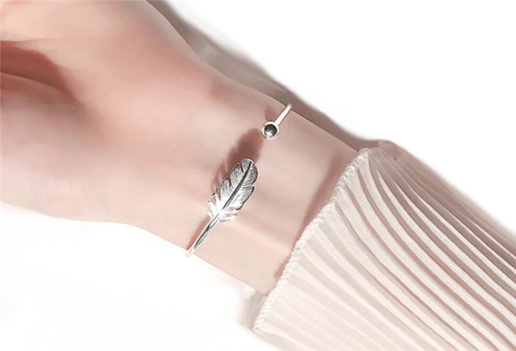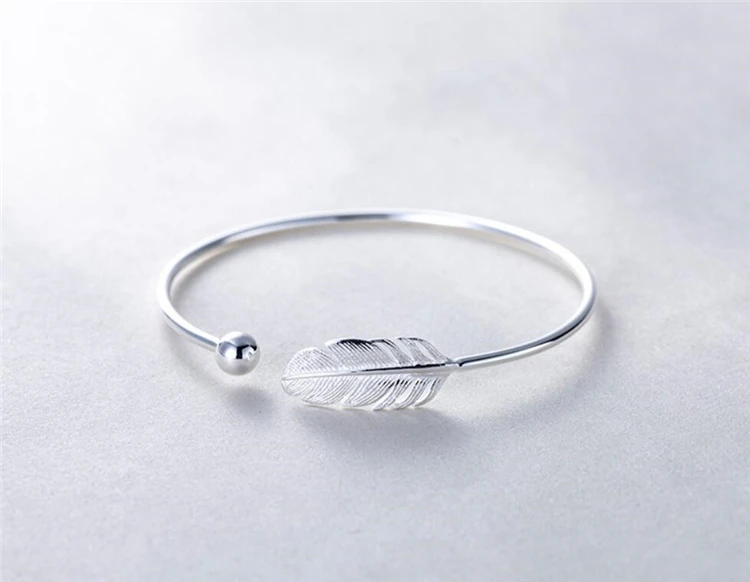 Fleepmart Sole Memory Simple Feather Cute 925 Sterling Silver Female Resizable Bracelets
