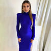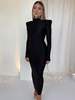 Fleepmart Solid Long Sleeve With Shoulder Pads Turtleneck Maxi Dress 2024 New Year Women Fashion Streetwear Elegant Skinny
