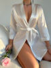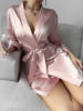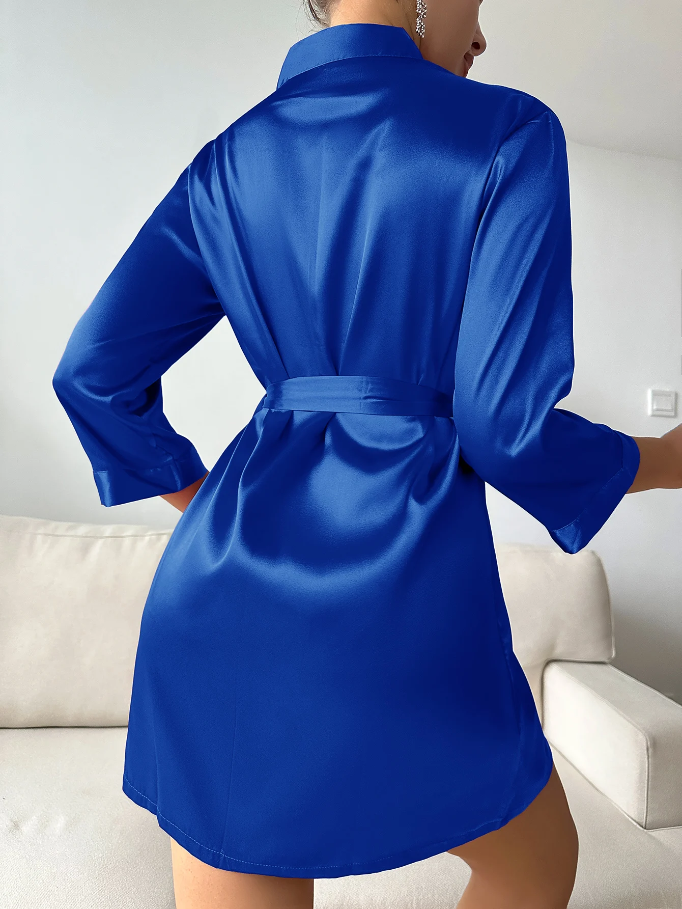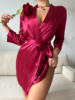 Fleepmart Solid Satin Night Robe Long Sleeve V Neck Robe With Belt Women’s Sleepwear
