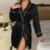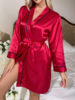 fleepmart Solid Satin Sexy Night Robe Elegant Long Sleeve V Neck House Robe With Belt Women’s SleepwearThere are no reviews yet
