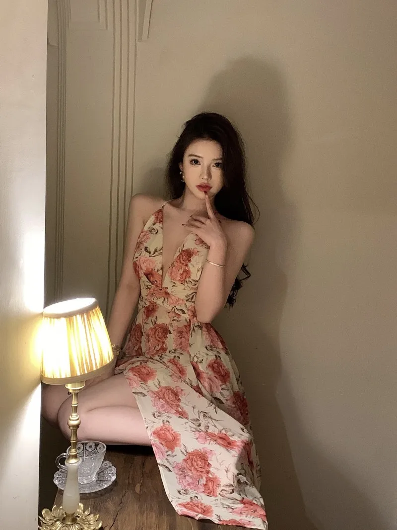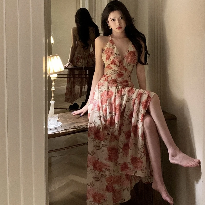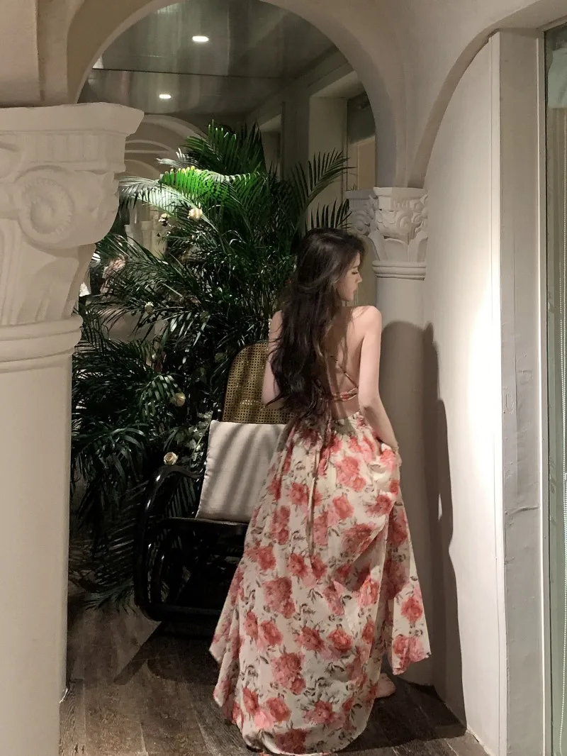 Fleepmart Spaghetti Strap Elegant Women Summer Floral Dress Sleeveless Vintage Chic A-Line Maxi Boho Vestidos Female Beach Holiday Dresses