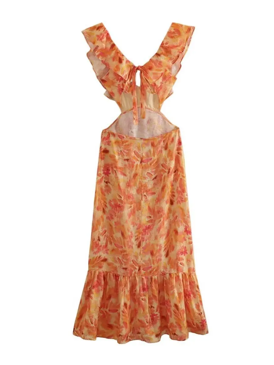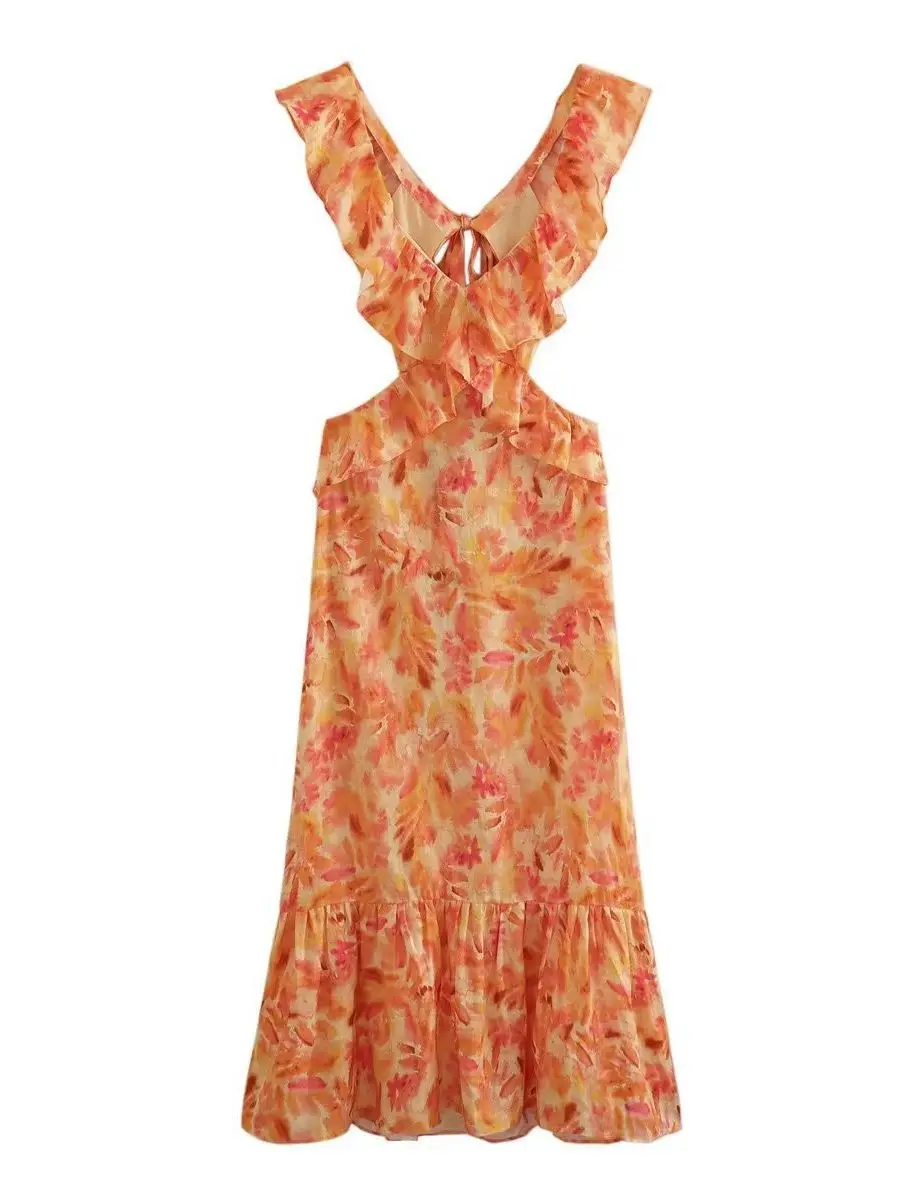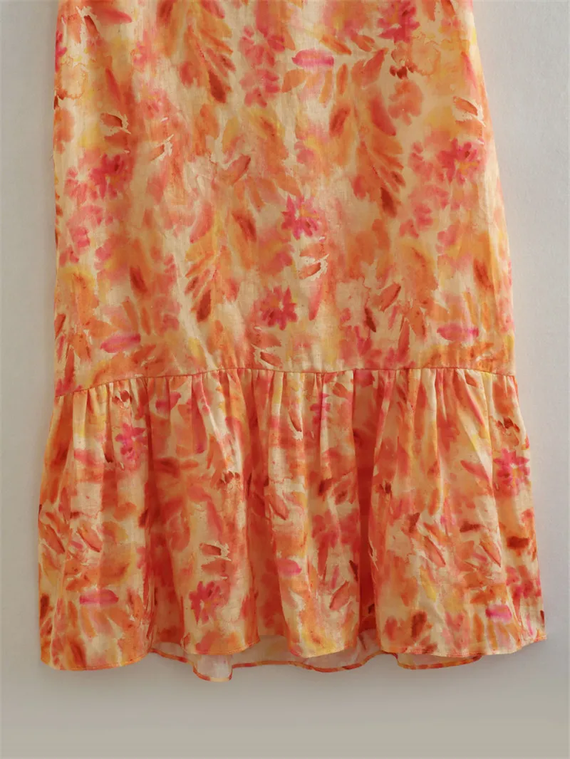 Fleepmart Spaghetti Strap Nightdress Summer Vest Dress V Neck Ladies Nightgown Printed Sleeveless Ankle Length Sleepwear For Female