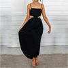 Fleepmart Spaghetti Strap Waist Hollow Out Beige Summer Maxi Long Dress Solid Elegant Backless Sundress Casual Women Dress 2022