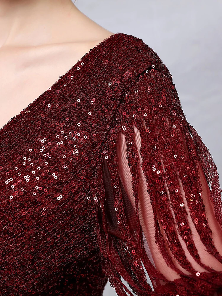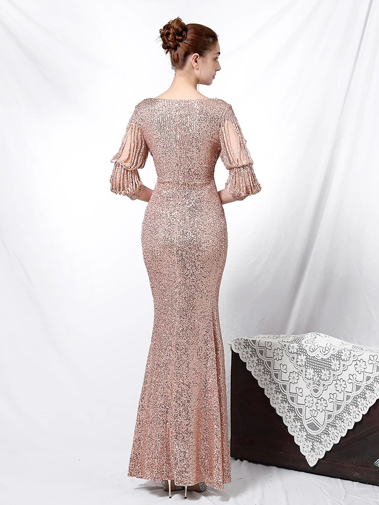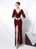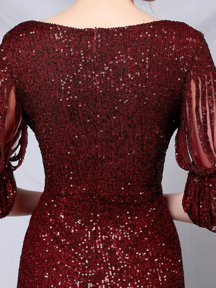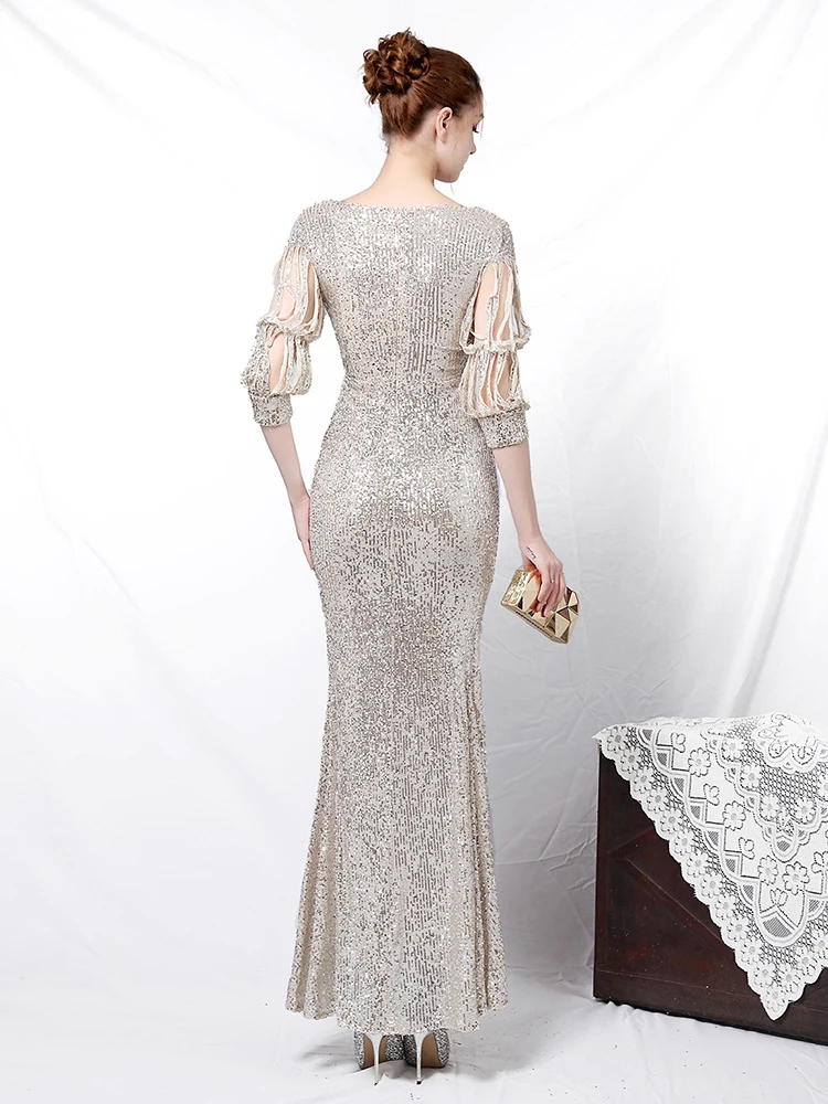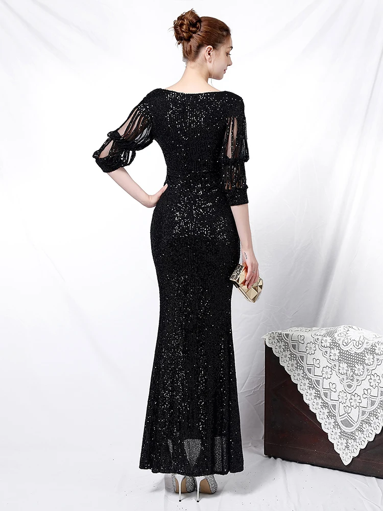 Fleepmart Split V neck Long sleeve Cocktail Party Dress Women’s Sexy Sequins Robe Floor length Shinning Formal Vestidoes Simple Full Dress